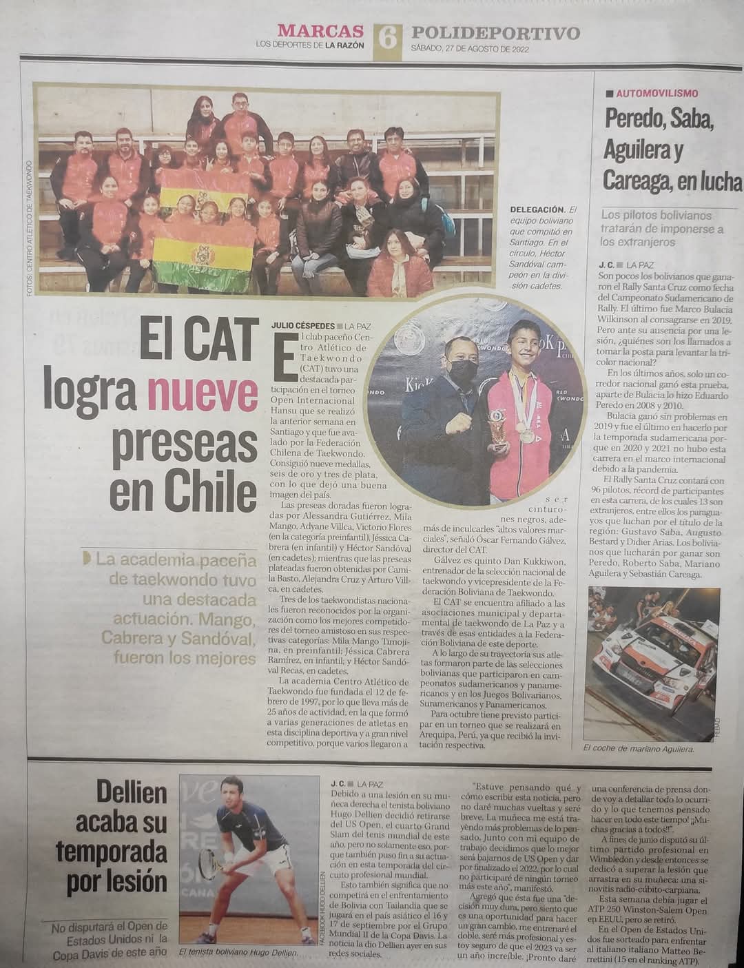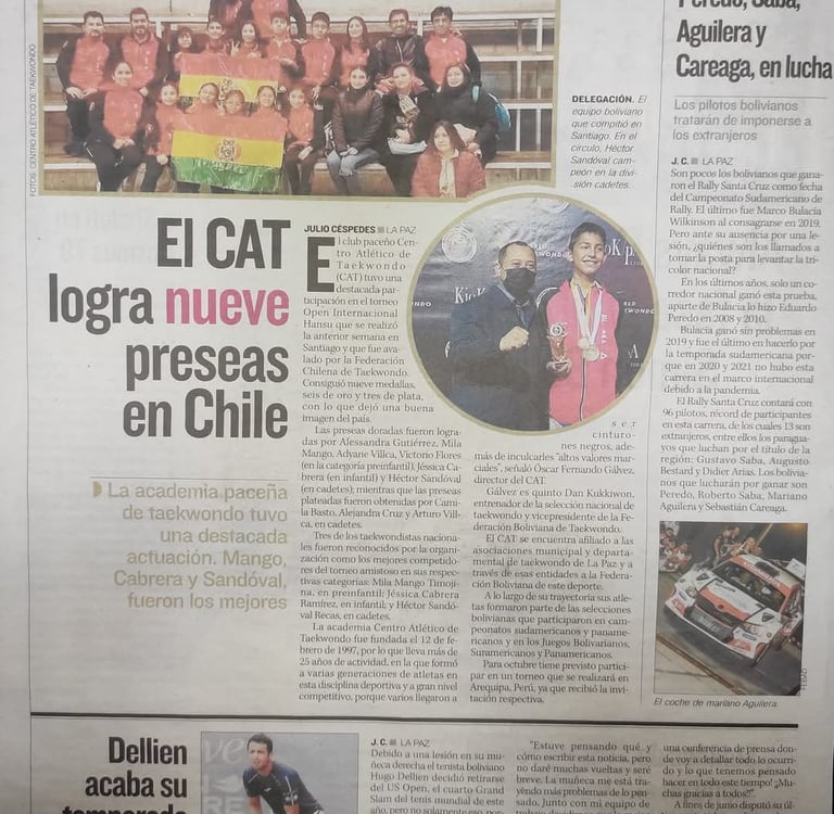 Descubre cómo el Centro Atlético de Taekwondo (CAT) se lució en el reciente Open Internacional Hansu en Chile, conquistando 9 medallas (6 de oro y 3 de plata) y dejando en alto el nombre de Bolivia. ¡Un reflejo del talento, disciplina y esfuerzo de nuestros atletas!